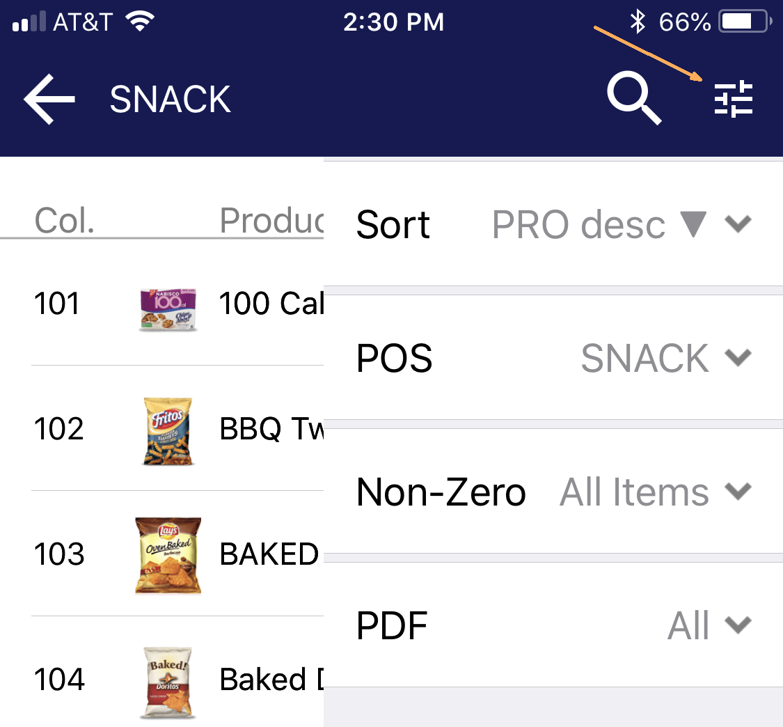 - The POS picklist provides the list of products necessary for the selected POS. To access the POS picklist, use the picklist icon at the bottom of the vending POS screen.